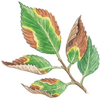 CONTROL — There’s no cure for bacterial leaf scorch. It can usually be diagnosed by symptoms alone but for a definitive diagnosis, check with your local extension agency. If you need time to select and plant a new tree, you can keep the old tree going by hiring an arborist to administer trunk injections to suppress the symptoms. Or delay the development of the disease by removing infected limbs and avoiding drought stress. Mulching around the tree and watering during dry spells will help keep moisture even. Whatever treatment you choose, the tree will eventually need to be removed.