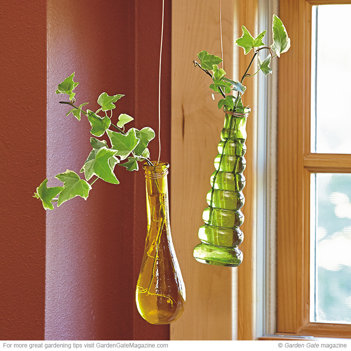 Save money on container vines this summer — take English ivy (Hedera helix) cuttings now. Start them in decorative glass containers filled with water and they’ll add color all around your house in the meantime.