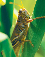 DAMAGE — Most grasshoppers are serious pests of agricultural crops, but they’ll eat vegetables, fruits and flowers, too. Usually they’re rural pests, but have become much more common as more people garden in suburbs and on acreages. Grasshopper damage is usually only aesthetic, but in large numbers they can ruin fruits and vegetables.