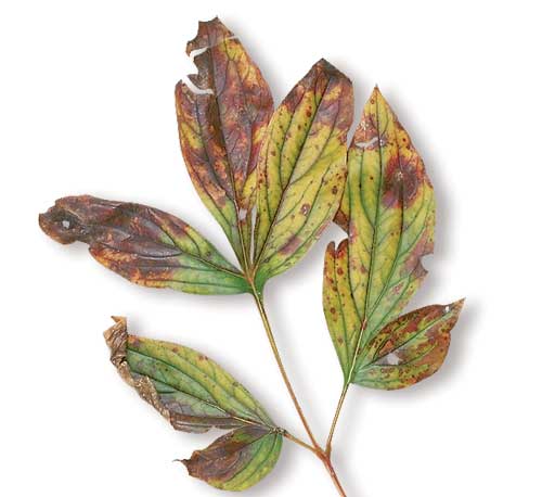 Botrytis is a fungus that often attacks peonies as they sprout, causing leaves and buds to turn brown and stems to rot and fall over.